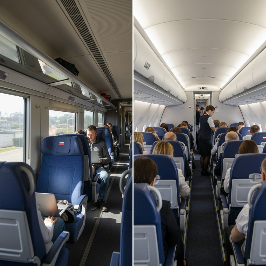 - Komfort: Pociąg niezmiennie dominuje pod względem swobody ruchu, możliwości pracy i braku stresu związanego z kontrolami bezpieczeństwa.