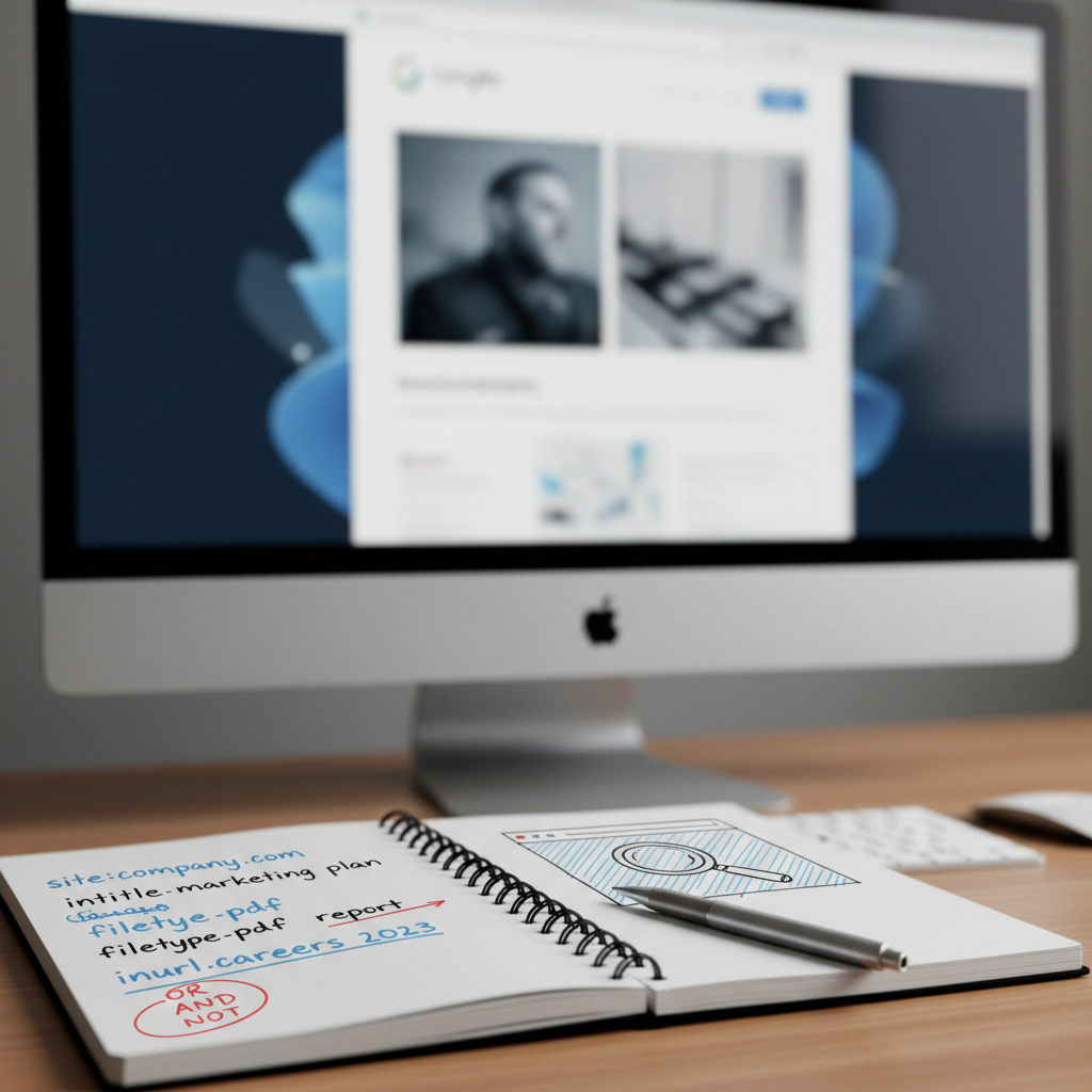 Małe polecenia (np. cudzysłów, minus, site:), które zmuszają wyszukiwarkę do posłuszeństwa. To różnica między „przeglądam” a „wydobywam”.