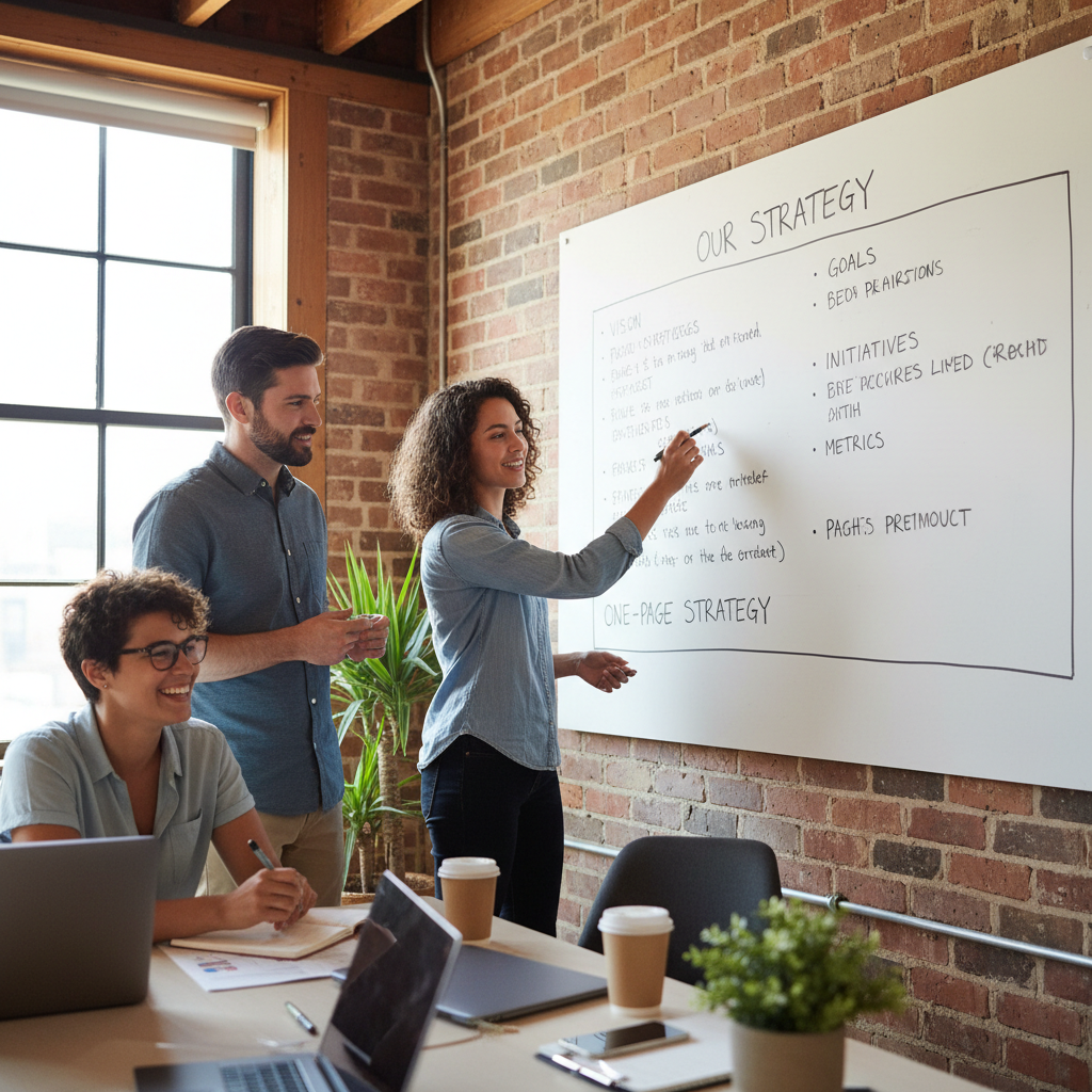 Szybki sanity-check: spróbuj opisać strategię w trzech zdaniach. Jeśli nie potrafisz powiedzieć (1) jaka jest diagnoza problemu, (2) jaka polityka przewodnia, (3) jakie 2–3 spójne działania i (4) czego nie robisz — to prawdopodobnie masz plan strategiczny, ale nie strategię. I to nie jest subtelna różnica: to różnica między ruchem a kręceniem się w kółko.